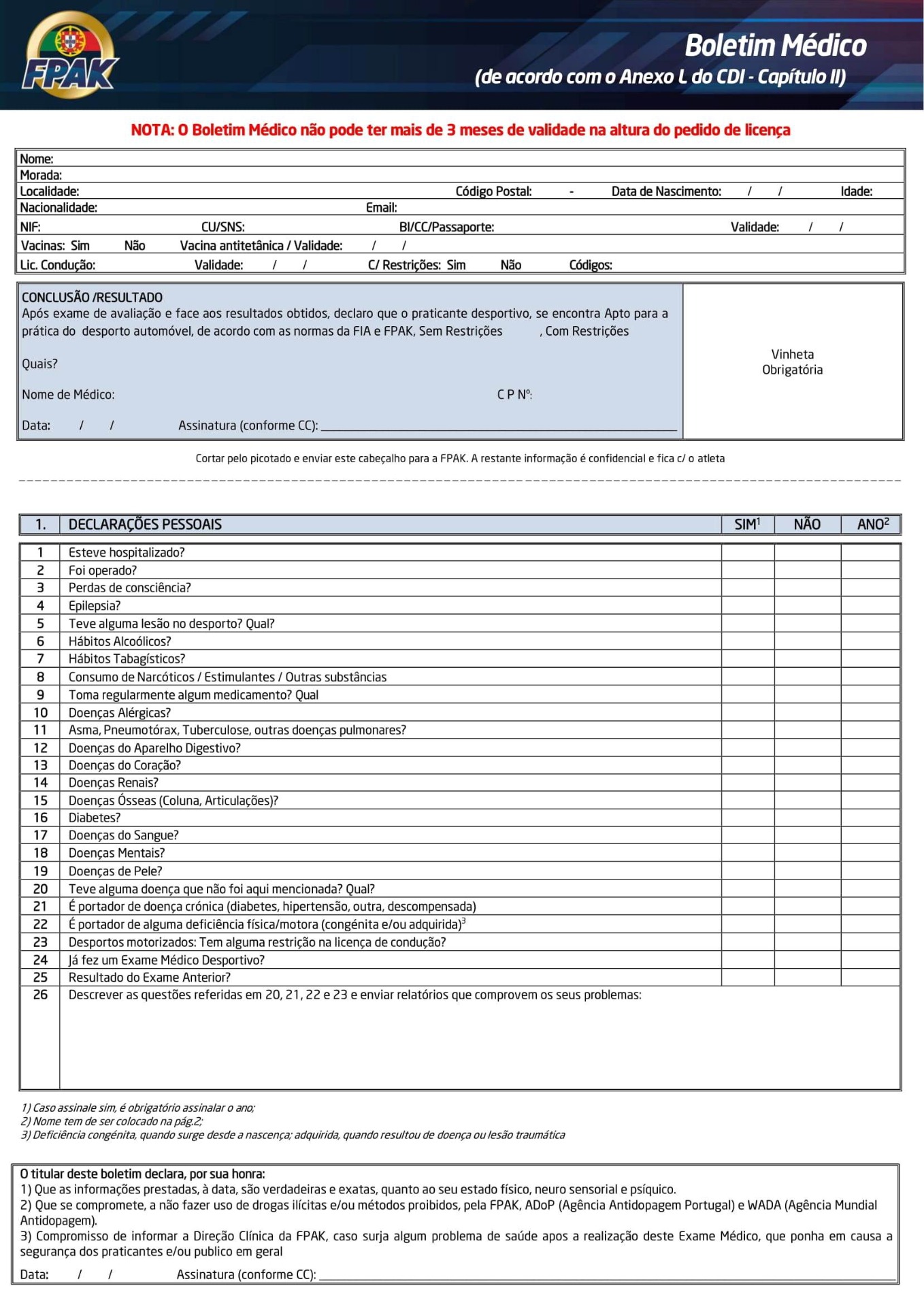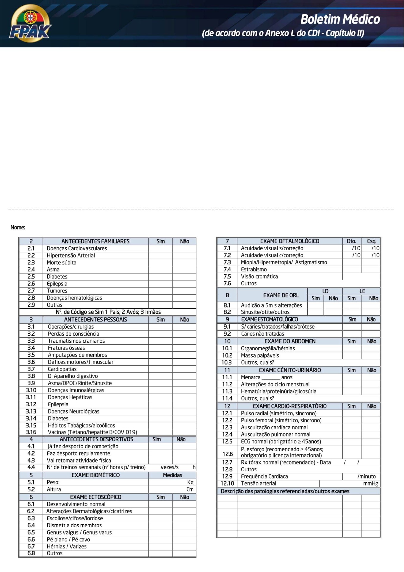 utilizado o Boletim Médico abaixo. As versões de anos anteriores não serão